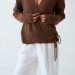 V yaka kesimi ve yan bağlama detayı ile zarif ve modern bir görünüm sunar.