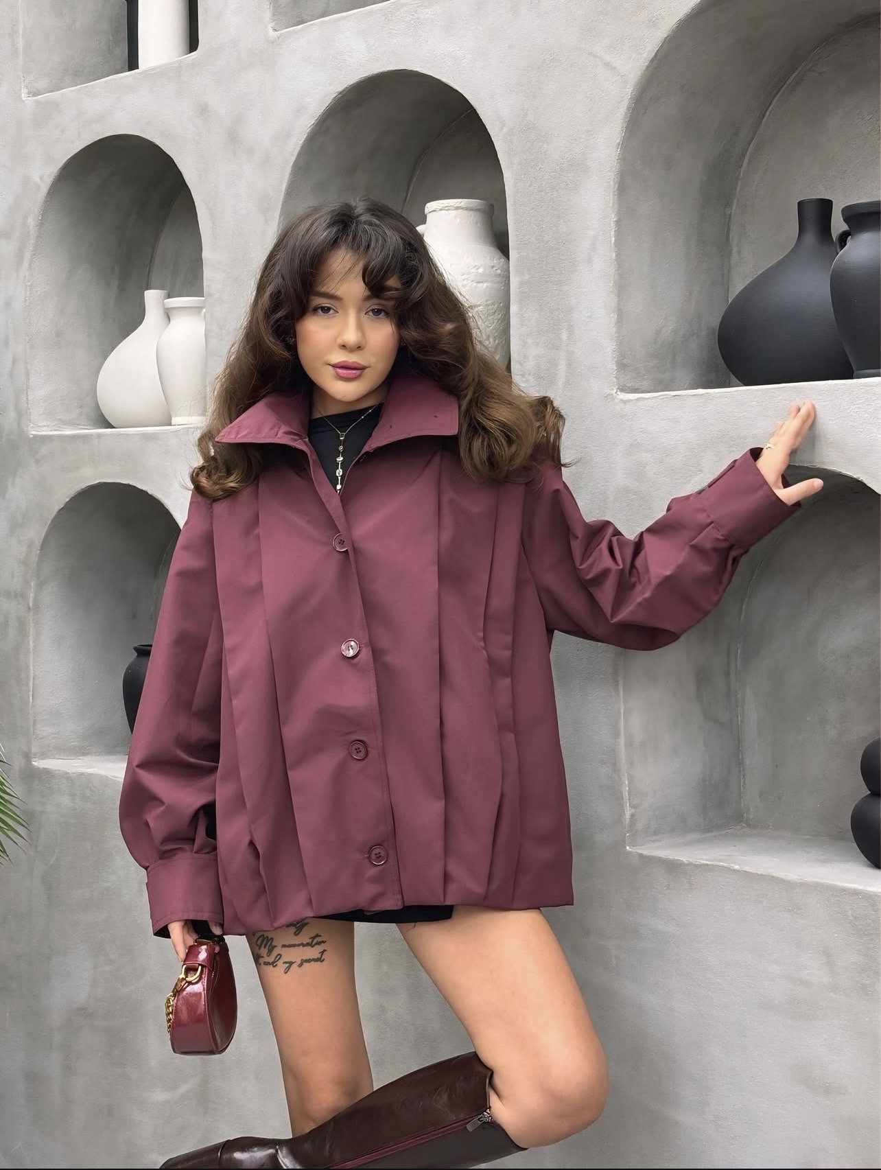 sade ve modern çizgisiyle zamansız bir şıklık sunar .yüksek yakası ,geniş kesimi ve düğmeli ön tasarımı ile konfor ve tarzıdır arada sunar.